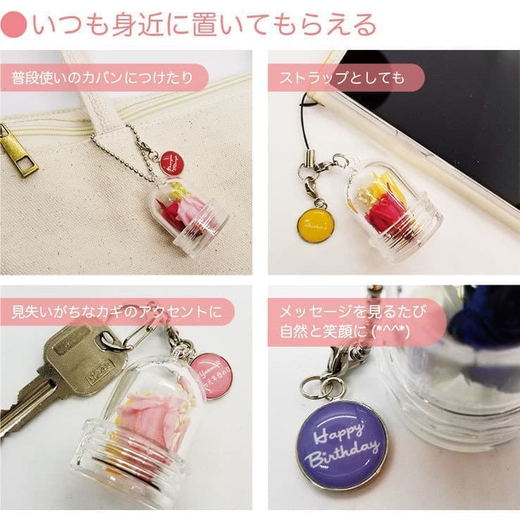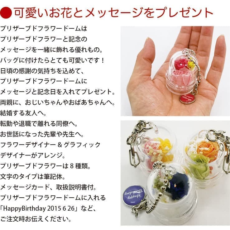 枯れない魔法の花 貴重なマイクロローズのプリザーブドフラワーを小さなケースにぎゅっと詰め込み、お祝いのメッセージや名前を入れて贈ることができる人気の商品です。