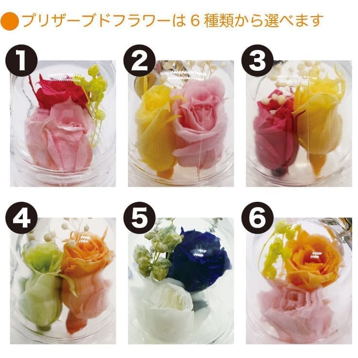 プリザーブドフラワーの色は6色 文字は筆記体