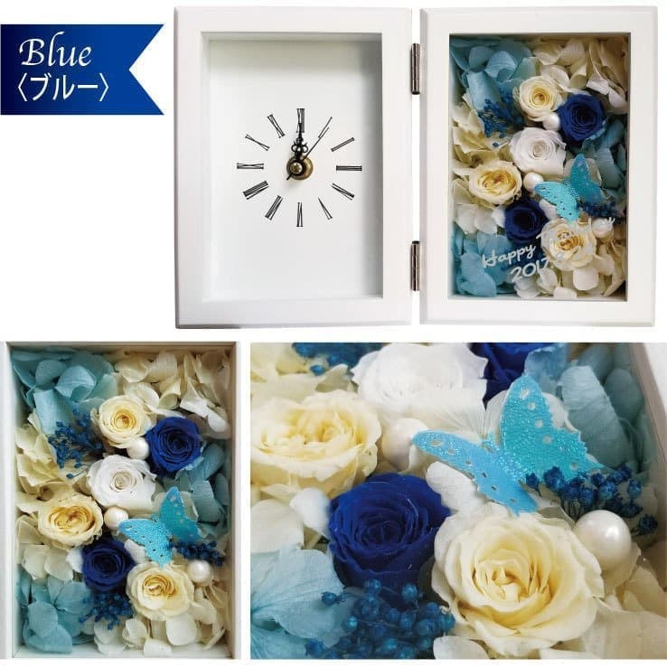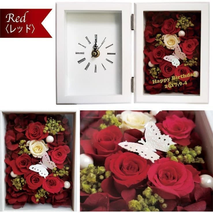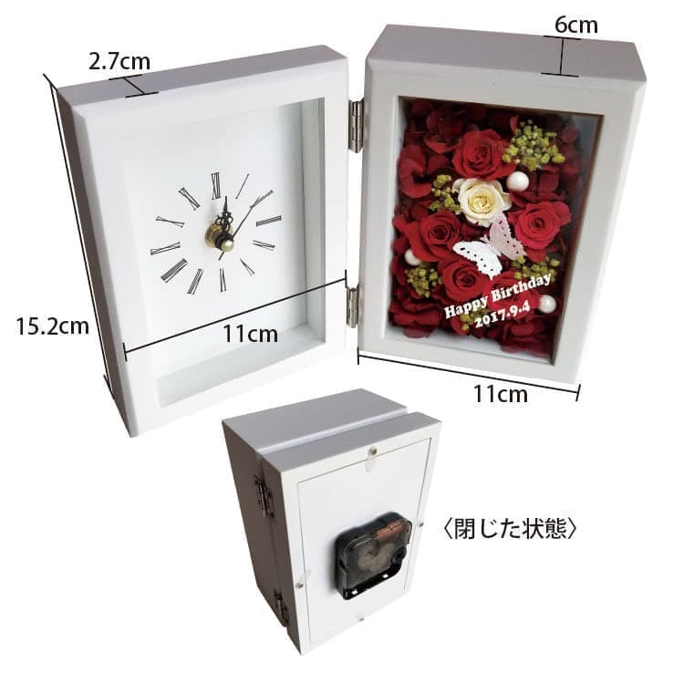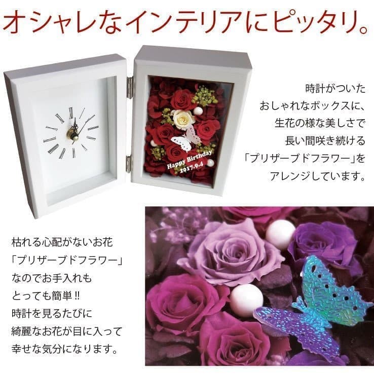 プリザーブドフラワー クロックボックスにメッセージと記念日を入れてプレゼント、