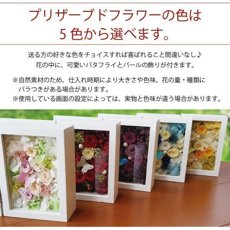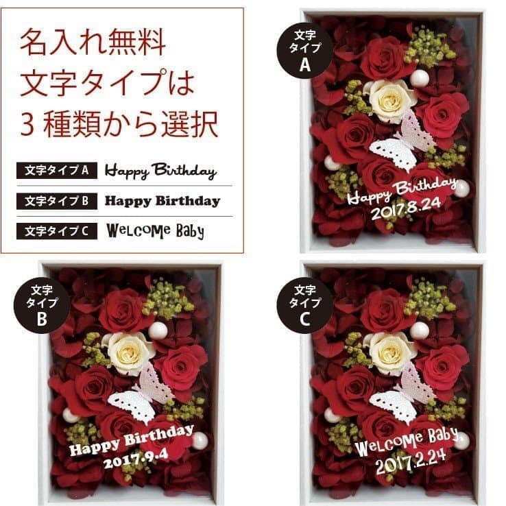 プリザーブドフラワーの色は5色 文字のタイプは3書体