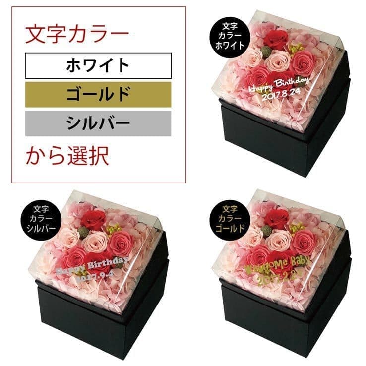 オリジナルプリザーブドフラワーボックスはプリザーブドフラワーと記念のメッセージを一緒に飾れる優れもの。