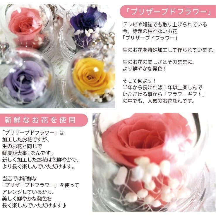 当店では新鮮な「プリザーブドフラワー」を使ってアレンジしているから、美しく鮮やかな発色を長く楽しんでいただけます♪